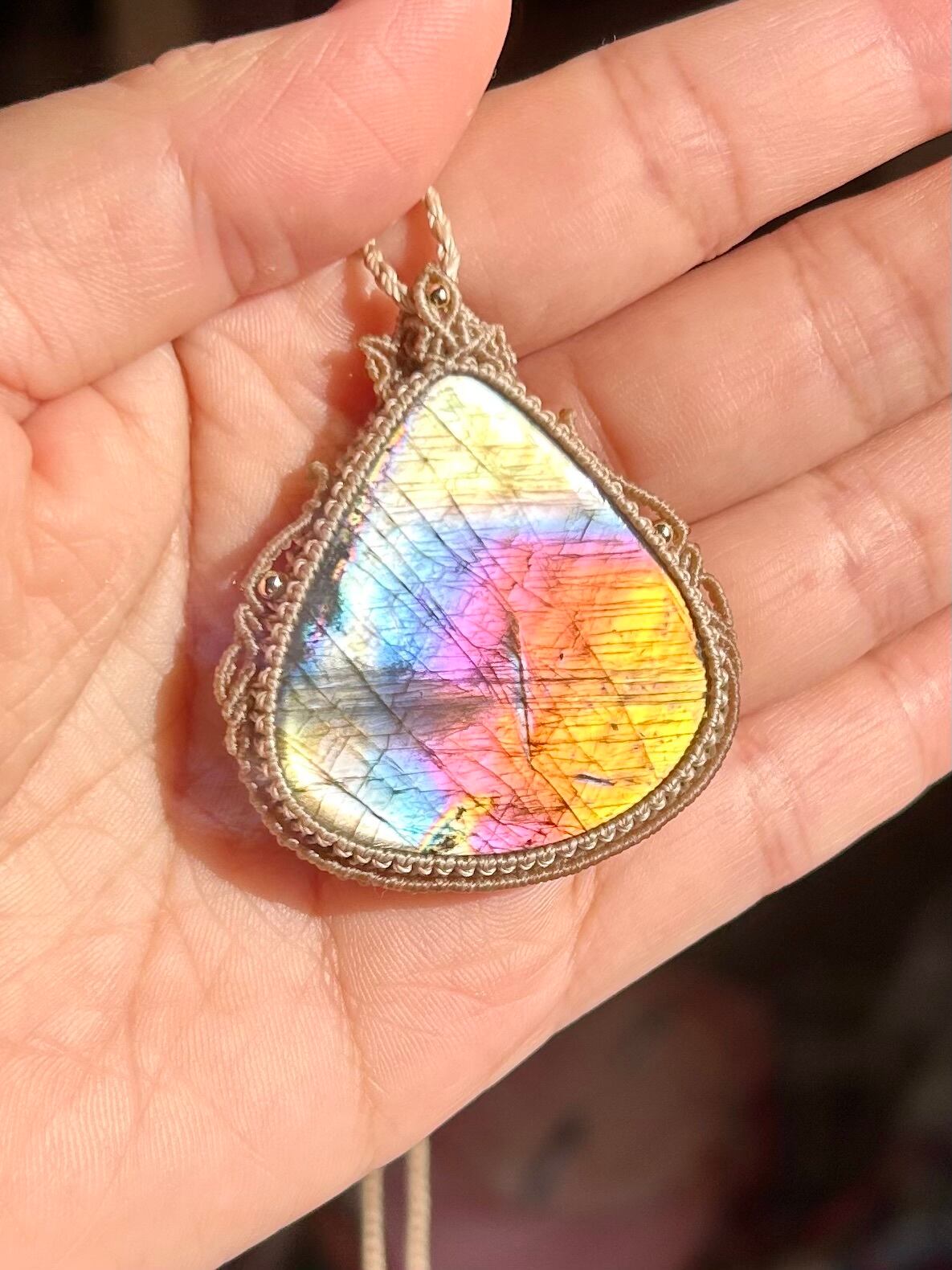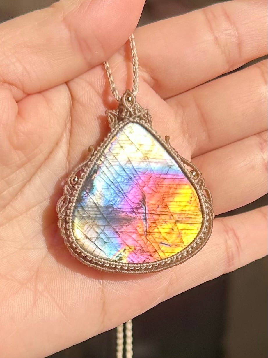 虹ラブラドライトマクラメネックレス